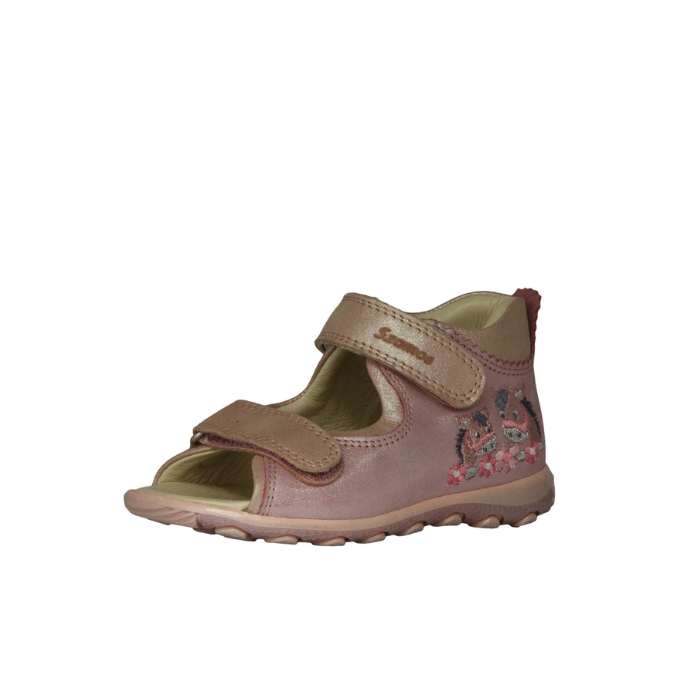 Szamos lány, bőr szandál hímzett mintával, kéregmerevítéssel.